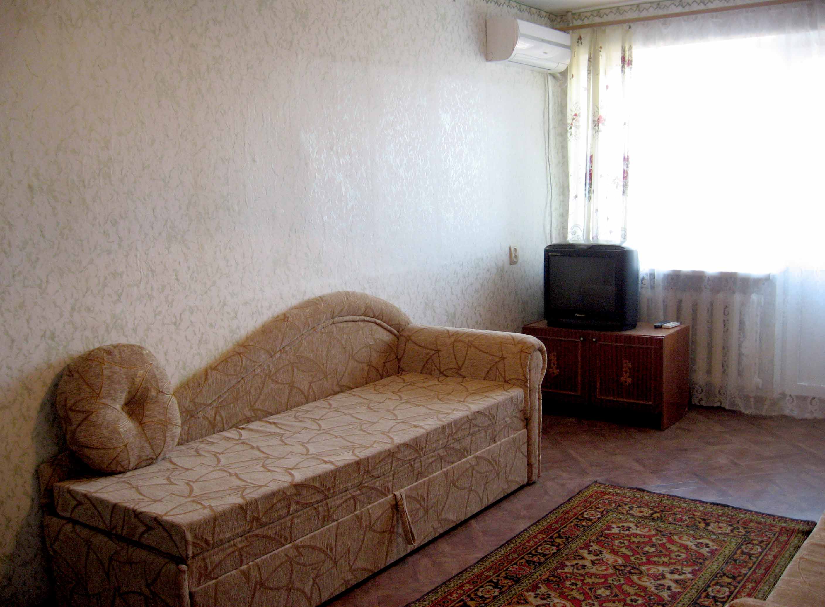 Сдам под ключ однокомнатную квартиру в посёлке Мирный (пригород Евпатории). Квартира на 2-ом этаже. Холодная, горячая вода круглосуточно (колонка-автомат), кондиционер, стеклопакеты, холодильник, газовая плита, цветной телевизор, кабельное TV, необходимая посуда, постельное бельё. Рядом магазины, кафе, рынок, бесплатные песчаные пляжи. Без посредников. Для 2 - 4 человек. Возможна встреча в Евпатории, Симферополе ( авто). Тел.+380995341498