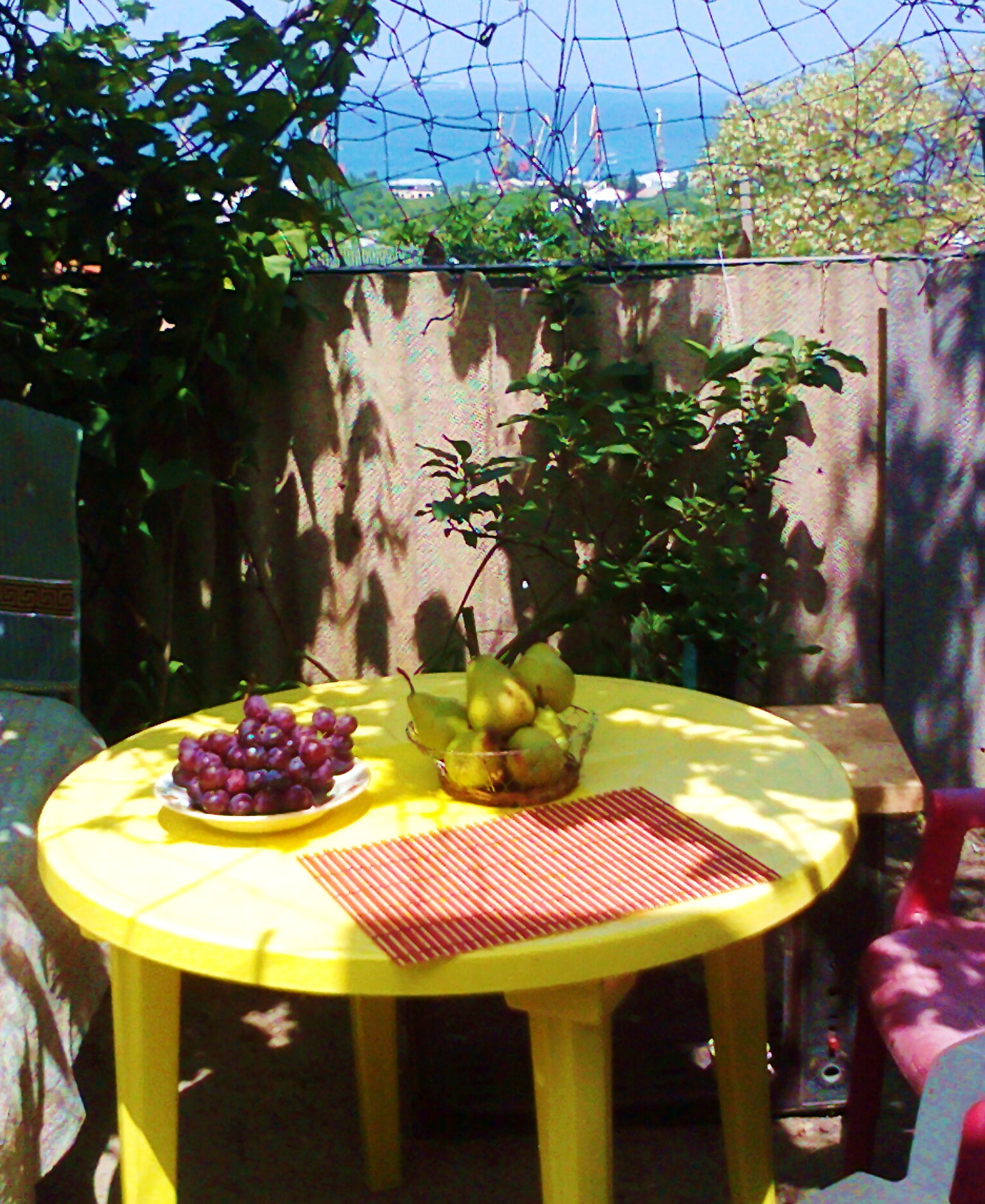 Сдам отдельный 2х-комн. дом(Гараж) для отдыха в Феодосии-тишина и покой частного сектора недалеко море! На фото вид из беседки! Частный двор в котором два дома-в одном живет хозяйка-бабушка, другой-чистый и уютный дом для семьи из 3х-4х человек. Во дворе есть беседка под виноградом и с видом на Феодосийский залив! ! ! В доме имеется вся мебель-двуспалная постель, раскладной диван и детская кровать, ковры на полу, электрочайник Tefal,утюг, газовая плита для готовки пищи, вся необходимая посуда, холодильник, ТВ с д/у. Душ с горяч.водой в доме. Во дворе беседка из винограда со столом и кроватью, туалет за домом. Дом сдается по цене в июне-120 гривен в сутки. С 1го До 20го июля- 160 грн. С 20го июля по 28 августа-200 гривен в сутки за весь дом. Сентябрь-100 грн. Бронирование по 30% предоплате на банковскую карту ВТБ24, ВТБ. Находится в районе БТИ-Нахимова улица.